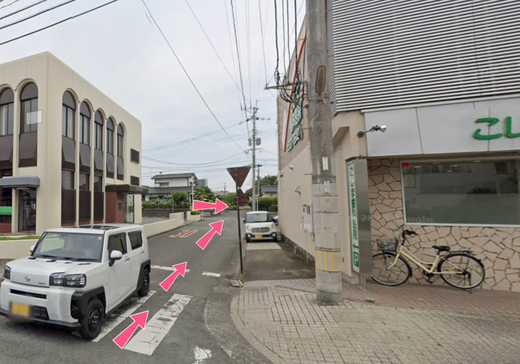 ▼ 熊本第一信用金庫さんを過ぎてすぐ左折しますと、駐車場がございます