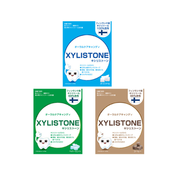 むし歯菌のエネルギー源にならないキシリトールを100%使用した、砂糖不使用・低カロリーの歯科用オーラルケアキャンディーです。約の立方体で、口の中でゆっくりと溶け、唾液分泌を促すことで再石灰化を助け、食後や歯磨き後の口腔内環境を整えます。