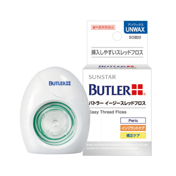 ブリッジやインプラント、矯正装置の隙間を清掃するために特別に設計されたフロスです。緑色の硬いスレッダー部分で隙間に挿入し、水を含むと膨らむスポンジ状の白いフロス部分で、ハブラシでは届きにくいプラーク(歯垢)や食べカスをしっかりと除去できます。