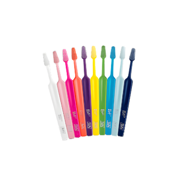 歯ブラシのヘッドが台形状になっており、奥歯まで届きやすく持ち手も握りやすい形にデザインされています。口腔外科処置後の清掃や歯ぐきの炎症の強い方のために毛のやわらかいものもあります。