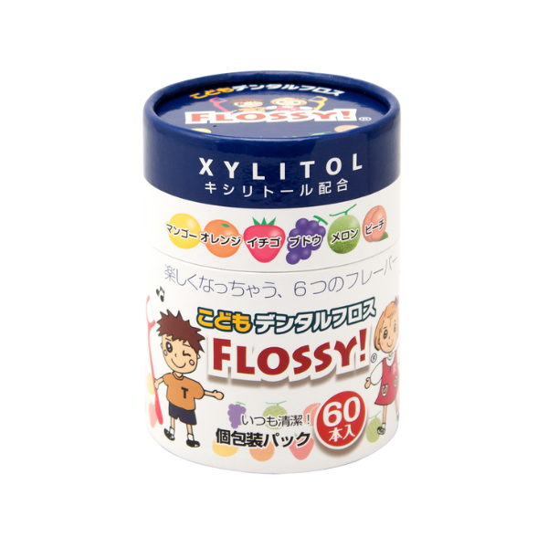 カラフルなハンドルといろいろなフルーツ味(マンゴー、オレンジ、イチゴ、ブドウ、メロン、ピーチの6種類)で、いつのまにか習慣になり、楽しみながらフロッシングできます。子どもの小さなお口に合わせたミニサイズで、細かくて丈夫なポリエチレン糸を使用しています。キシリトール配合でスッキリさわやかです。