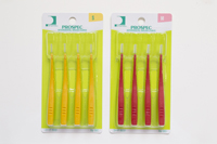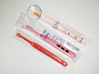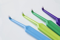 歯ブラシのヘッドが台形状になっており、奥歯まで届きやすく持ち手も握りやすい形にデザインされています。口腔外科処置後の清掃や歯ぐきの炎症の強い方のために毛のやわらかいものもあります。