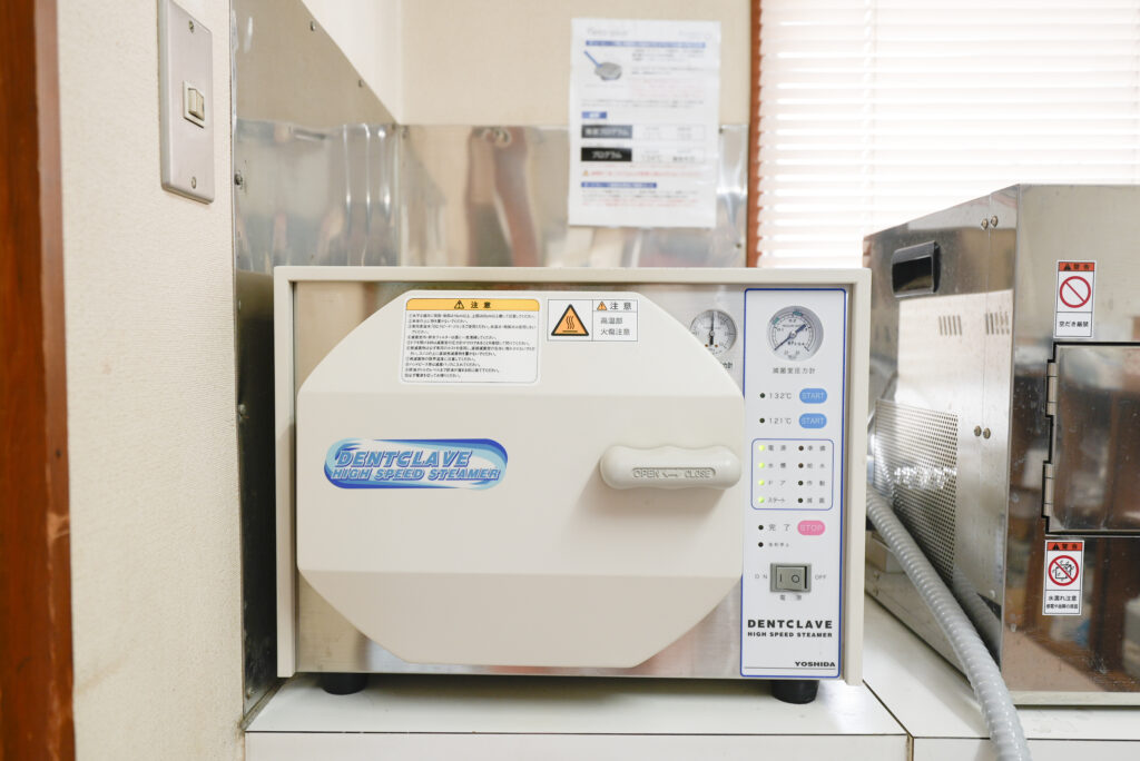 新しい滅菌器を導入し、治療器具や歯を削るハンドピースは患者様ごとに滅菌・交換を行っています。