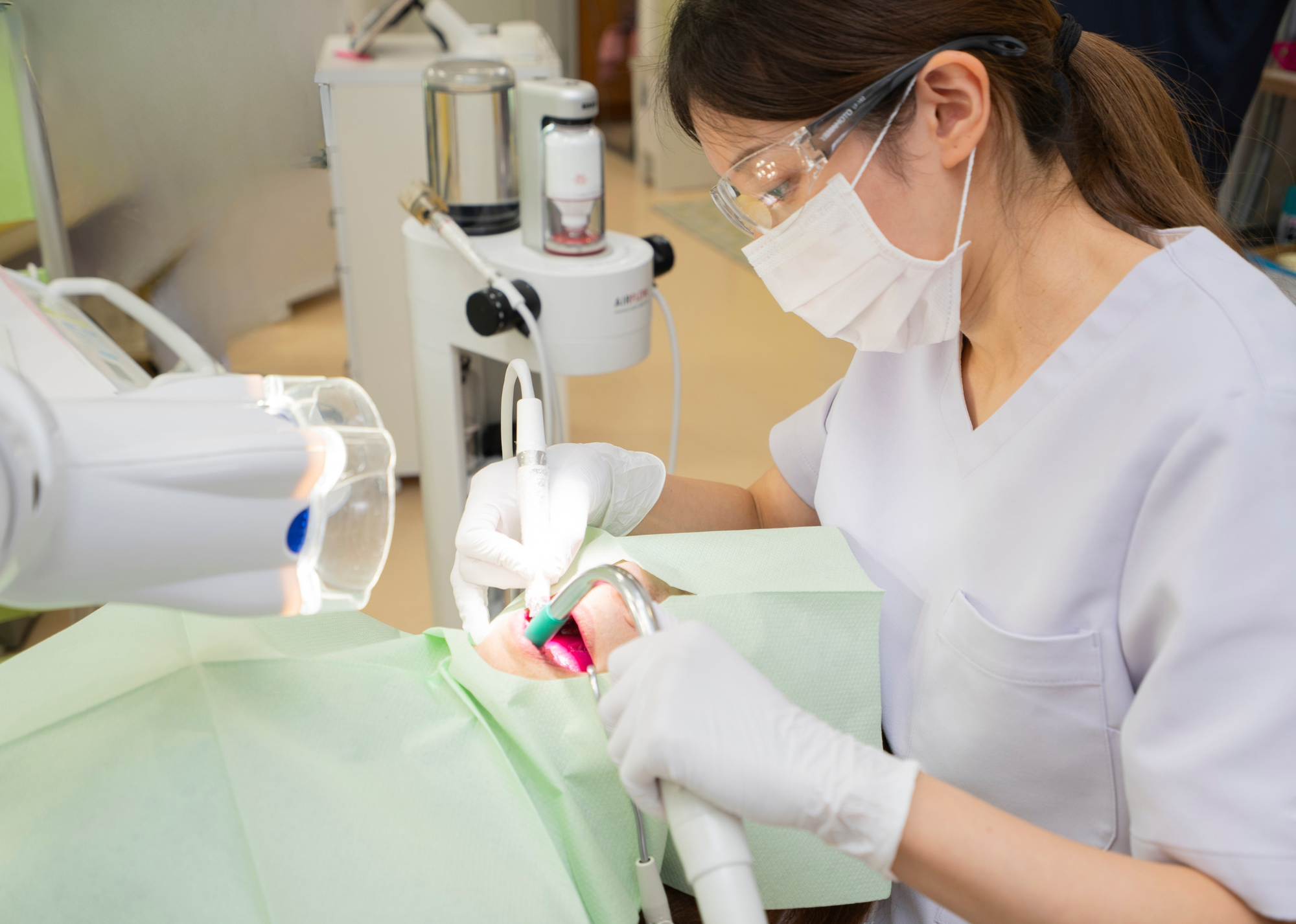 マイクロスコープをはじめ、エアーフローという着色や汚れが歯に優しく効率よく落とせる機械も導入し、保険治療でも導入しています。