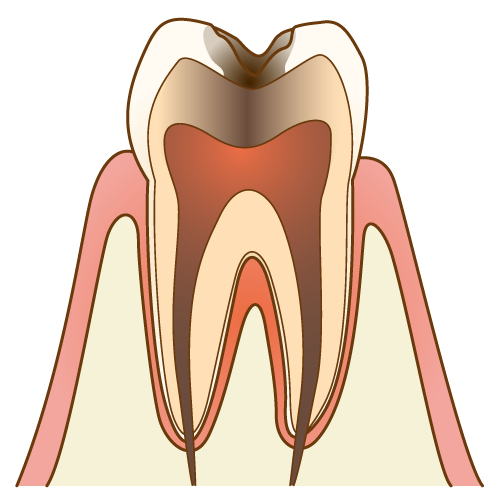 エナメル質が浅く溶け、黒ずんだ穴が出てきます。自覚症状はありません