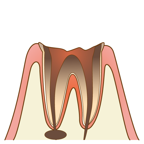冷たいものがしみ、痛みの自覚症状が出てきます。進行すると熱いものがしみるようになります。