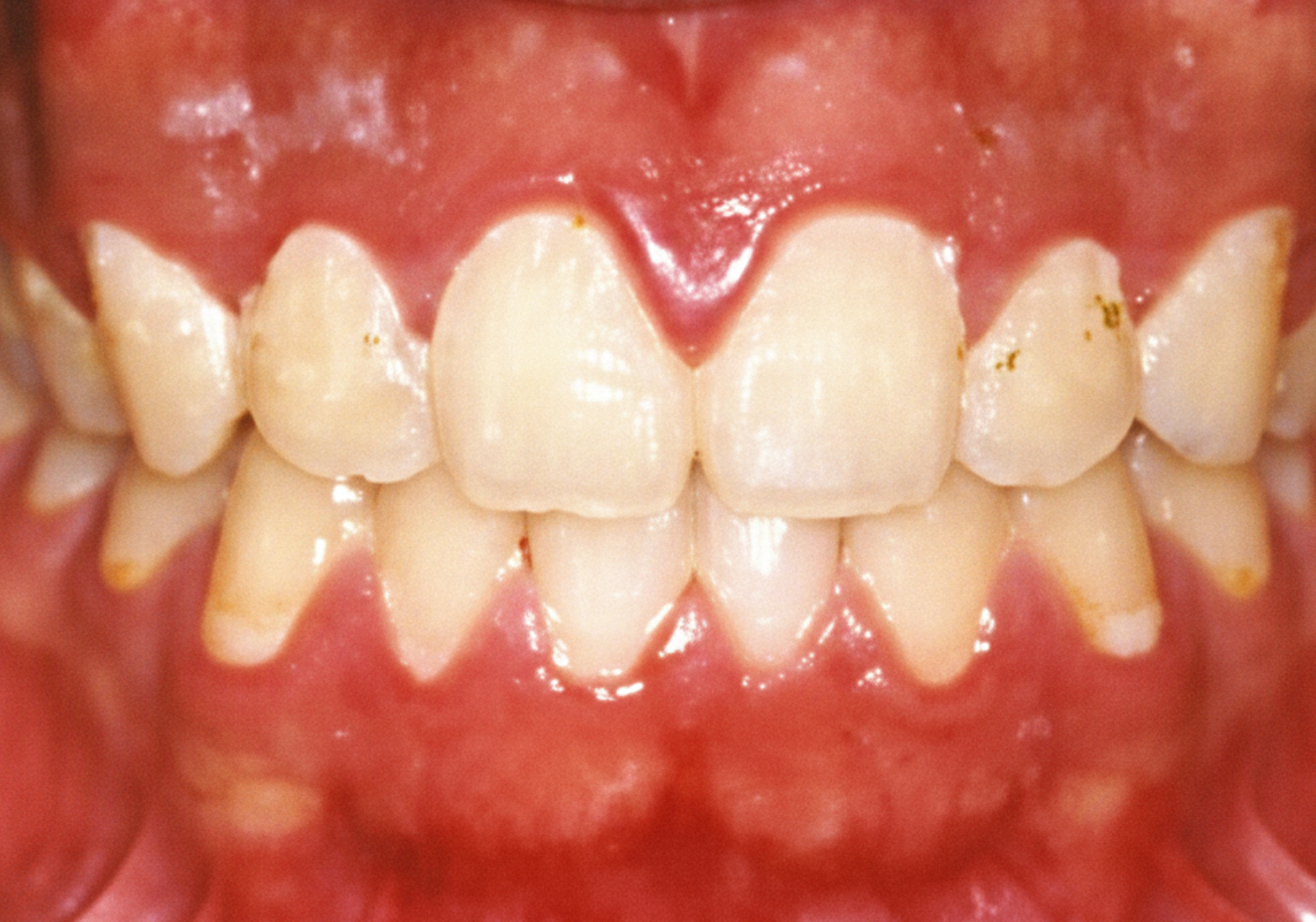 歯石や歯垢がついて歯ぐきが赤く丸くはれています