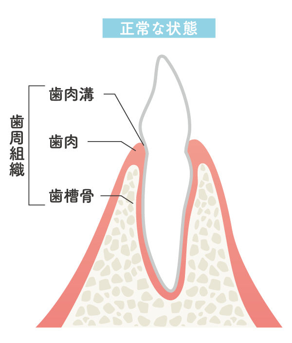 正常な状態の歯ぐきと歯の周り