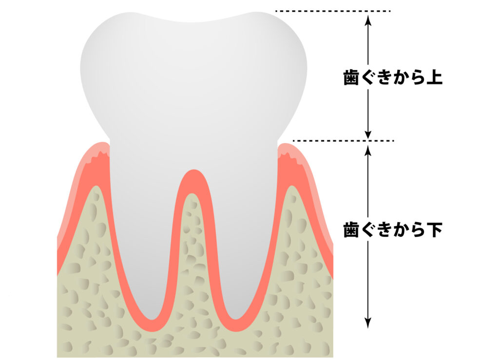 - 歯と歯ぐきの境目の溝は1mm〜2mm程度